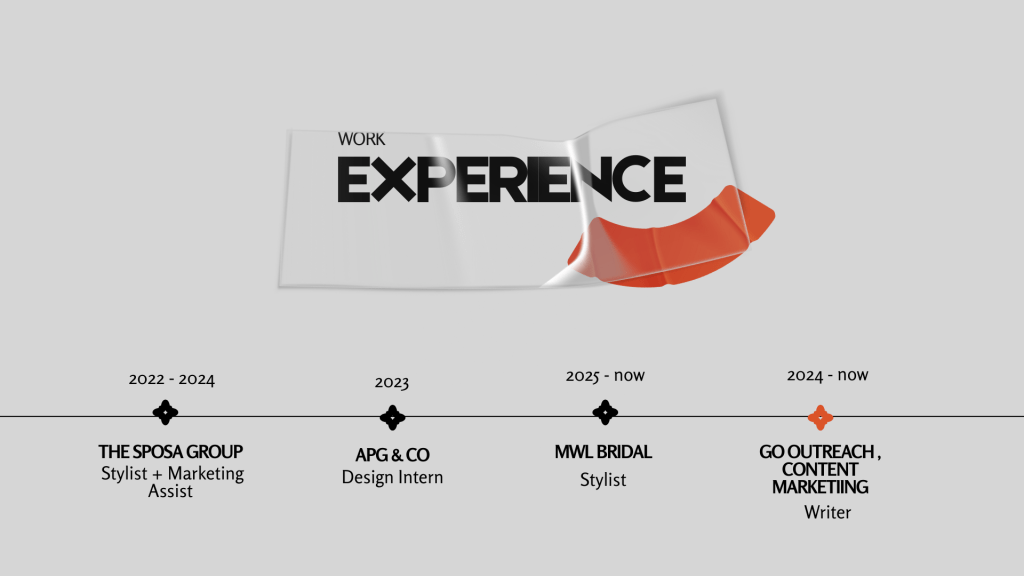 Working as a bridal stylist has significantly strengthened my client-relations and collaborative skills while allowing me to work creatively with clients and the team.